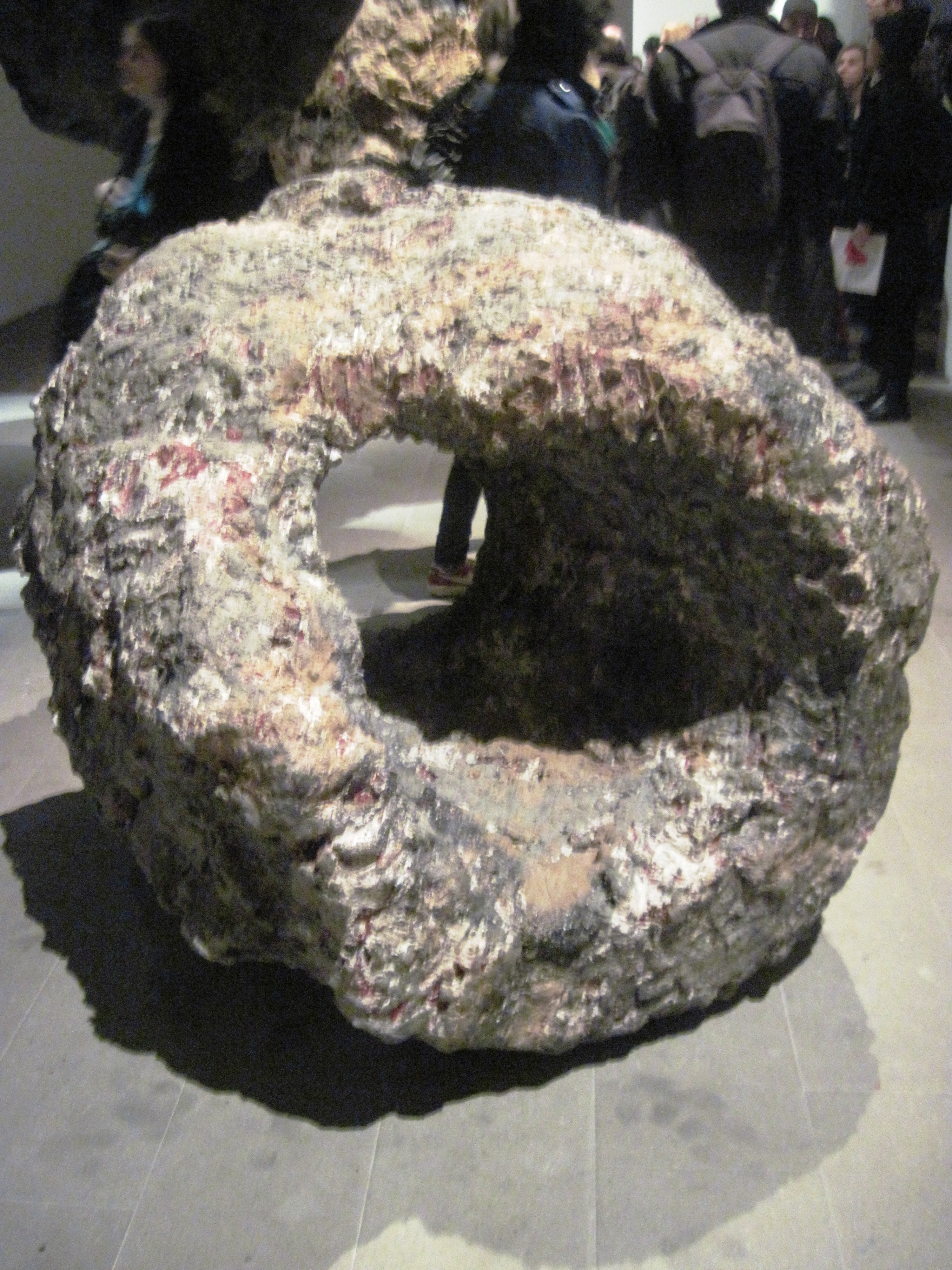 IMG_0626Le sculture imponenti e instabili di Phyllida Barlow paiono simulare aspetti trascurati del paesaggio urbano – pile di macerie, ponteggi o mucchi di materiale di scarto – che l’artista reiventa servendosi di un arsenale degno di bricoleur. In opposizione alla sua formazione accademica adotta materiali economici e di recupero, con i quali da vita a oggetti biomorfi che ricordano le astrazioni più sensuali di scultori postminimalisti come Eva Hesse. Ha sviluppato una sorta di ecosistema artistico all’interno del quale ricicla e utilizza le sue sculture, smantellandole e riconfigurandole in nuove combinazioni.