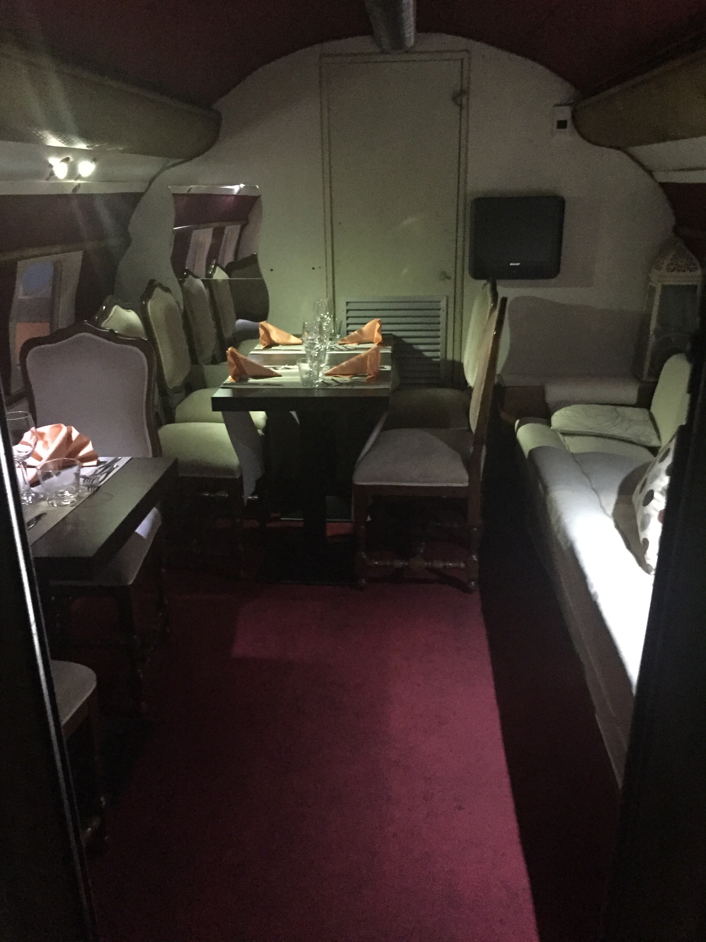 Un aereo presidenziale, per l’esattezza: un Convair Metropolitan 440 del 1957. Una cena a bordo di un aereo presidenziale accessibile a tutti… tutti quelli che hanno almeno 60 euro da spendere (anzichè 100, grazie agli sconti che regalano spesso sulla loro pagina facebook) per passare una serata diversa, all’insegna di location insolite e buona cucina.